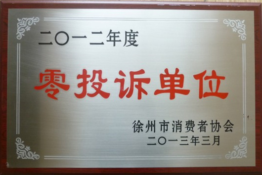 • 徐州市消費者協(xié)會頒發(fā)零投訴單位